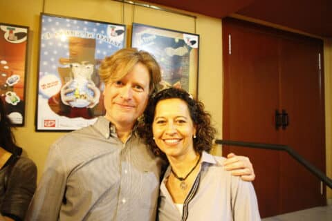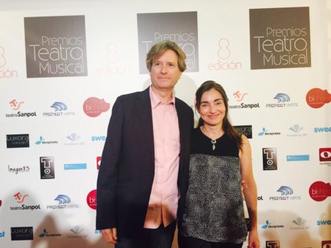 Miquel Agell i Lídia Linuesa al teatro Sanpol de Madrid en l’entrega dels Premios de Teatro Musical on van recollir el premi al millor espectacle per a públic familiar per Tom Sawyer detectiu -